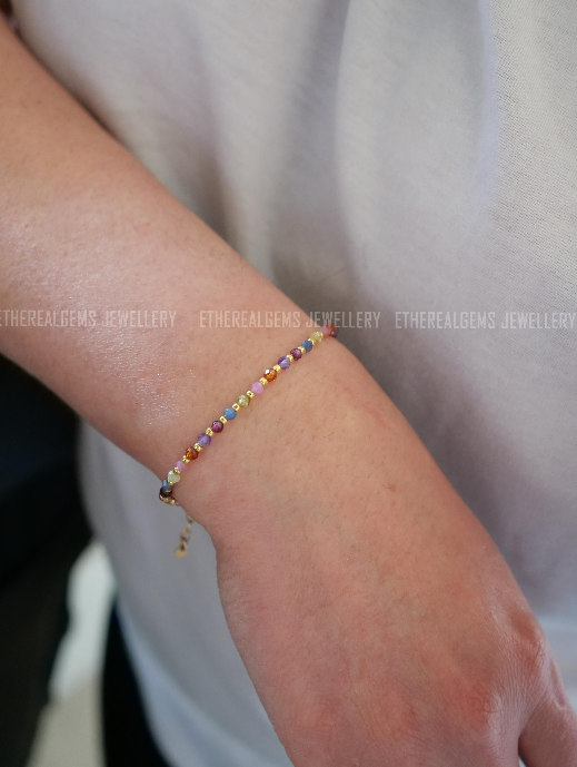 3mm Tiny Gemstone Bracelet, Dainty gemstone bracelet, Statement bracelet, Stacking bracelet, Multicolour bracelet