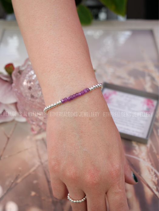 4mm Ruby Star Beaded Natural Gemstone Sterling Bracelet, July birthstone, Gift for her, Birthday gift, Genuine Top Grade Gift Jewellery