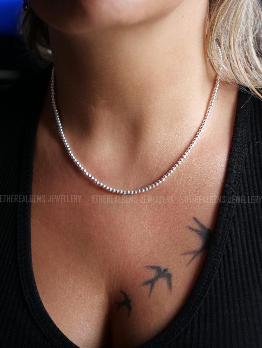 3mm Sterling Silver Beaded Necklace, Layering Necklace, Ball Bead Chain Necklace, Silver jewellery, Gift for her, Solid 925 Sterling Silver