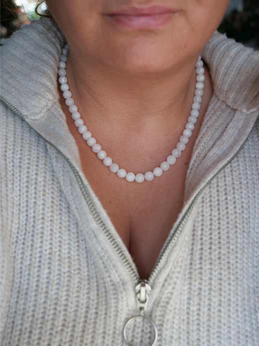 Moonstone 8mm Beaded Natural Gemstone Sterling Silver Necklace, Genuine Top Grade Gift Jewelry, Women Men Fashion Crystal Jewellery
