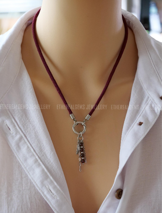 Pyrope Garnet Necklace, Milan rope necklace, Burgundy cord necklace, Western necklace, Boho necklace, Statement necklace, Vintage necklace, Gift
