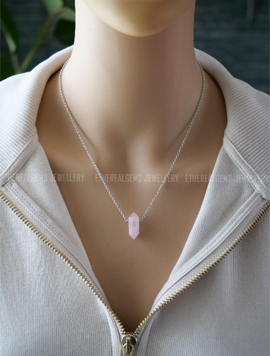 Rose Quartz Point Natural Gemstone Sterling Silver Pendant Necklace, Genuine Top Grade Gift Jewelry, Women Fashion Crystal Energy Jewellery