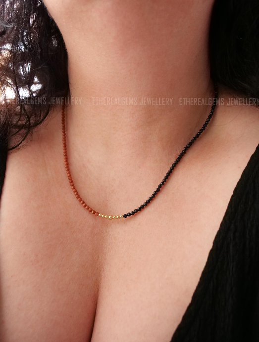 Goldstone necklace, Half half necklace, Gemstone beaded gold silver sandstone jewellery, Stacking jewellery, 3mm gemstone necklace