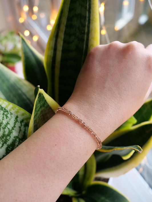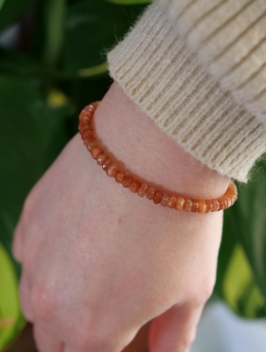 Sunstone 5 - 6 mm Beaded Natural Gemstone Sterling Silver / 14ct Gold Filled Elastic Bracelet, Top Grade Gift Jewelry, Woman Jewellery