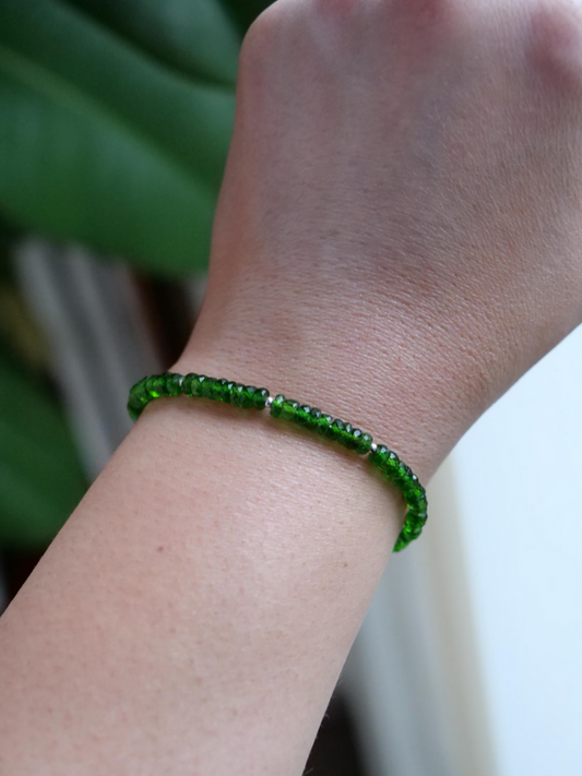 Chrome Diopside 3 - 4 mm Beaded Natural Gemstone Sterling Silver/14ct Gold Filled Bracelet, Genuine Top Grade Gift Jewelry, Women Fashion Jewellery