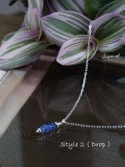 Kyanite 5mm Natural Gemstone Sterling Silver Bar Pendant Necklace, Genuine Top Grade Gift Jewelry, Women Fashion Crystal Energy Jewellery