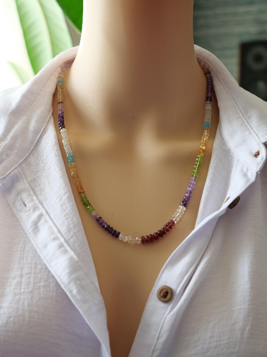 Garnet, Amethyst, Peridot, Citrine Necklace, Beaded gemstone necklace, Mix gemstone necklace, Ombre necklace, Multicolour Necklace Jewellery