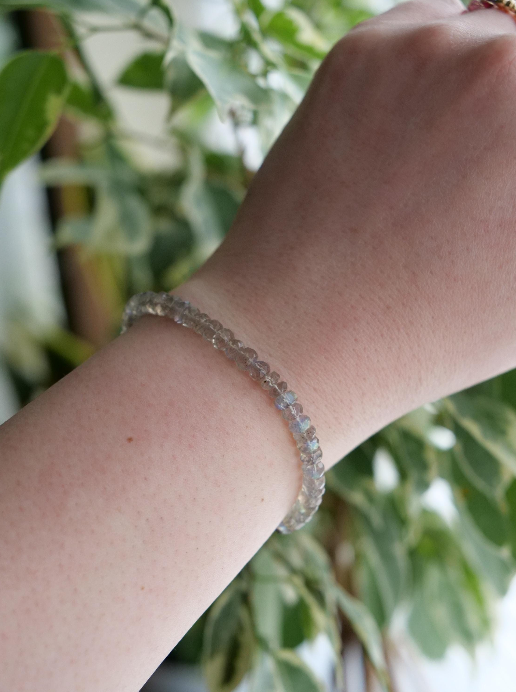 Labradorite 5mm Beaded Natural Gemstone Sterling Silver / 14ct Gold Filled Elastic Bracelet, Genuine Top Grade Gift Jewellery, Women Jewelry