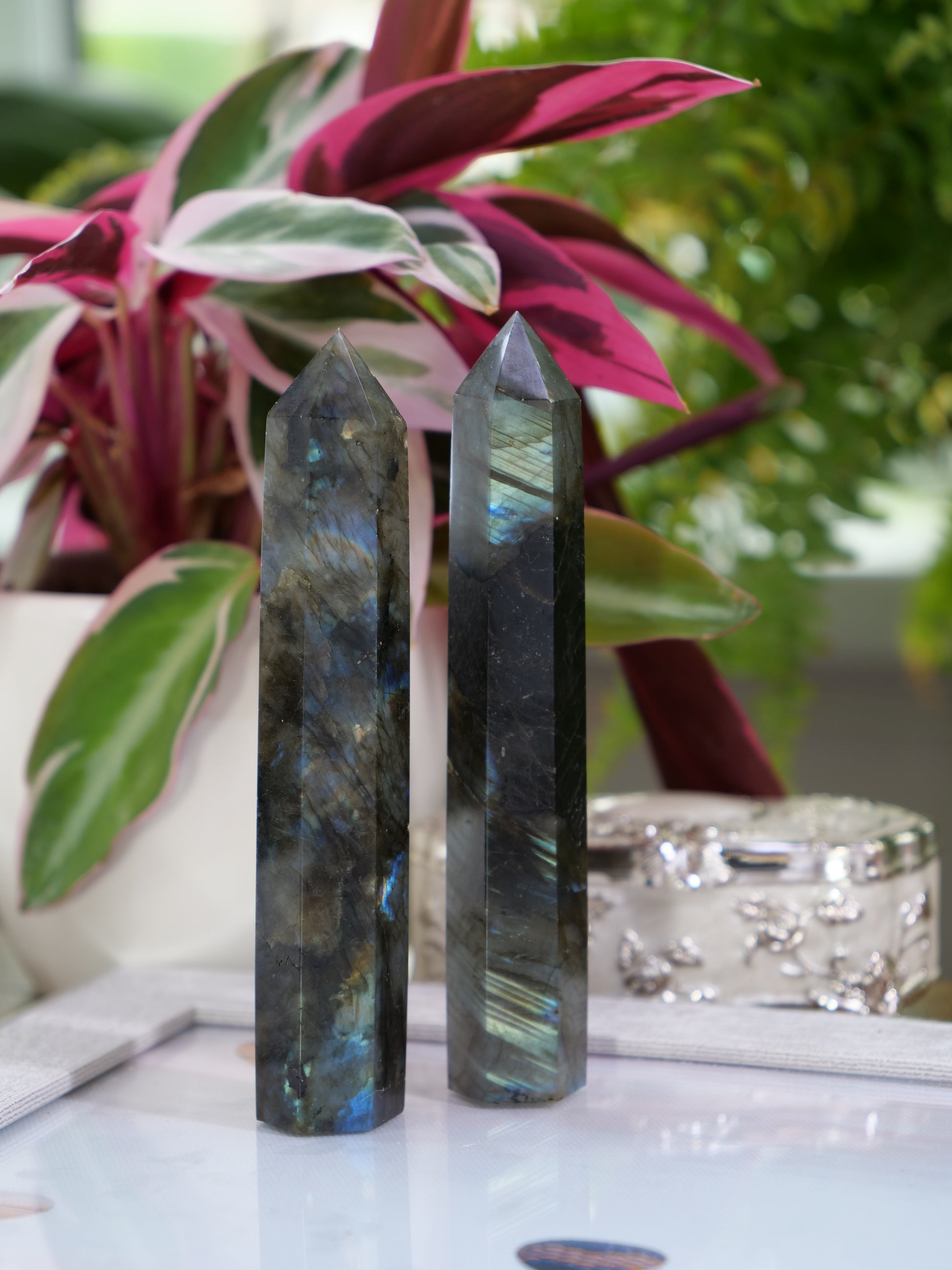 Labradorite 5-inch Natural Energy Crystal Tower Point Mineral Gemstone, Home Decoration Obelisk Gift Meditation Wand Gem