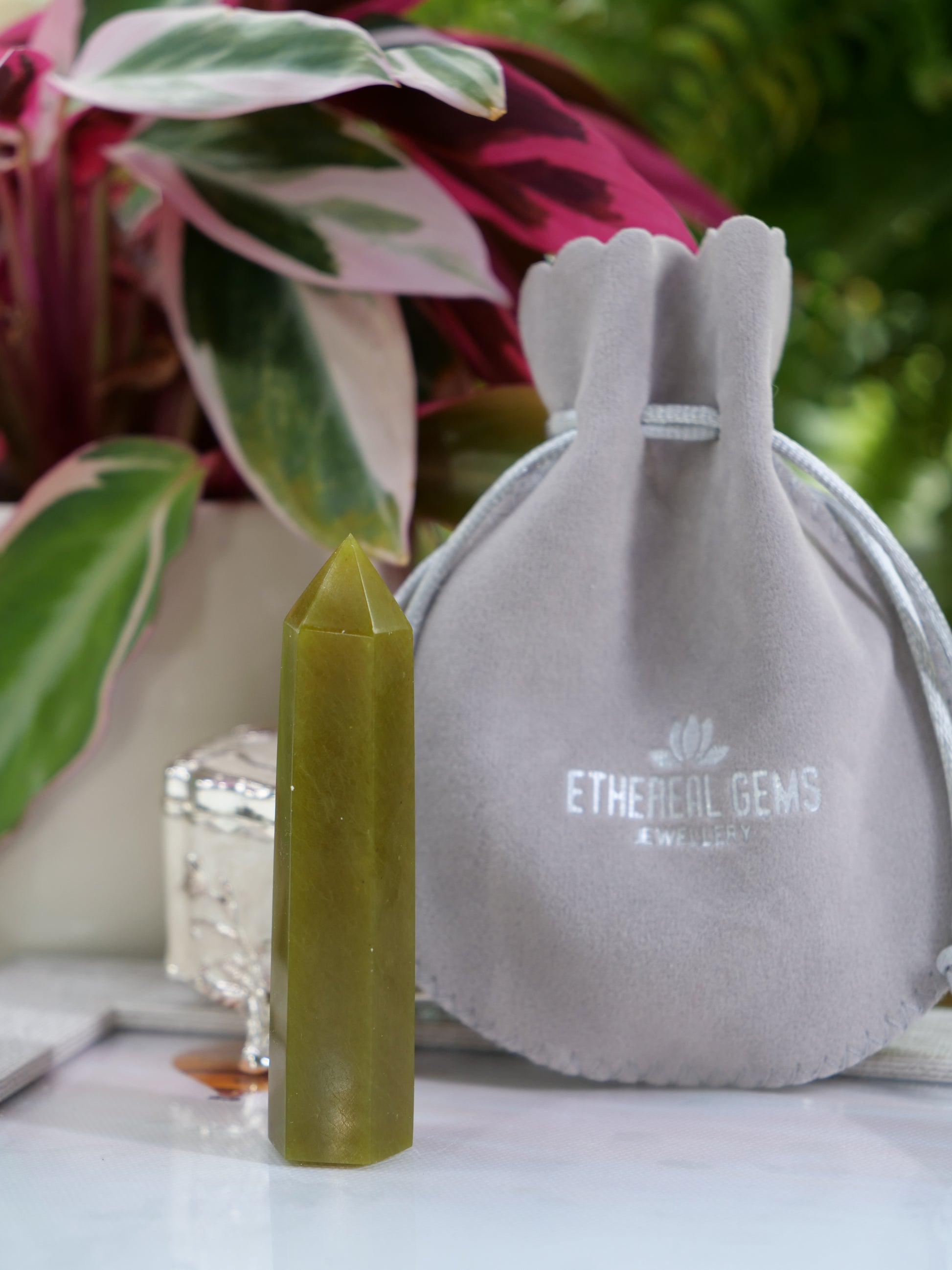 Peridot 2.9-inch Natural Energy Crystal Tower Point Mineral Gemstone, Home Decoration Obelisk Gift Meditation Wand Gem