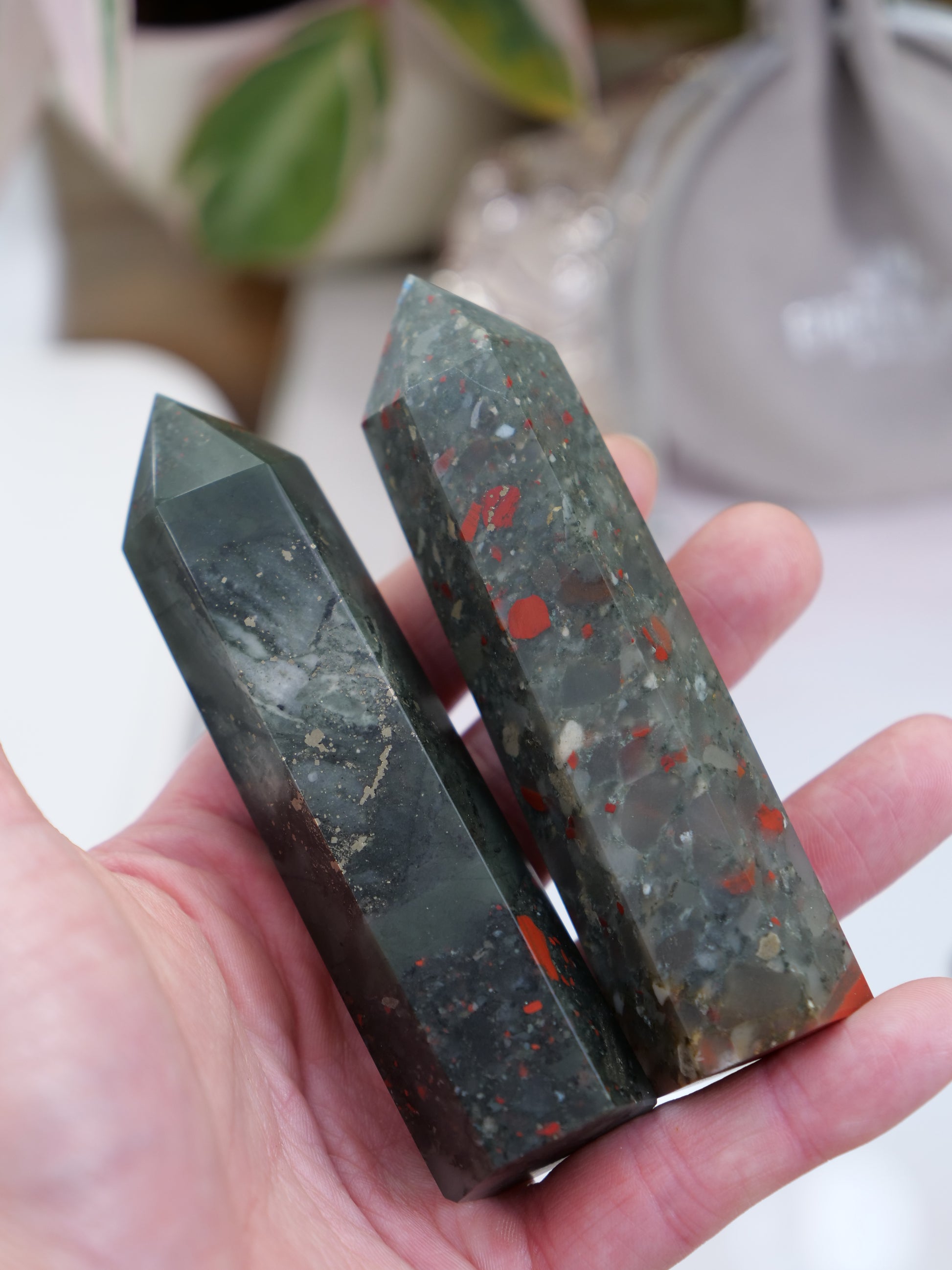 Bloodstone 3.9-inch Natural Energy Crystal Tower Point Mineral Gemstone, Home Decoration Obelisk Gift Meditation Wand Gem