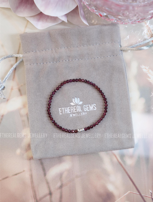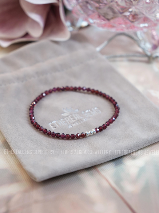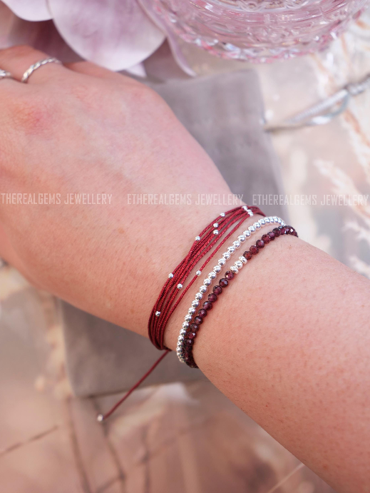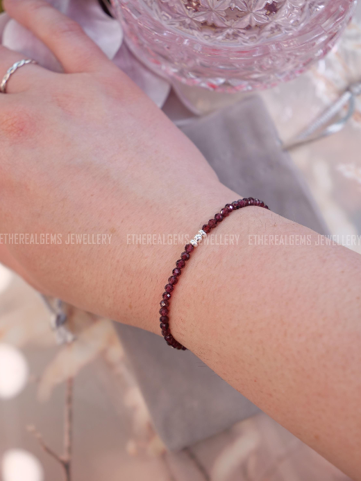 3mm Minimalist Gemstone Bracelet, Almandine Garnet bracelet, Elastic gemstone bracelet,Stacking bracelet,Beach bracelet,Red vintage bracelet