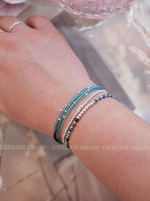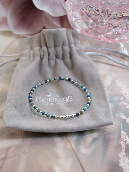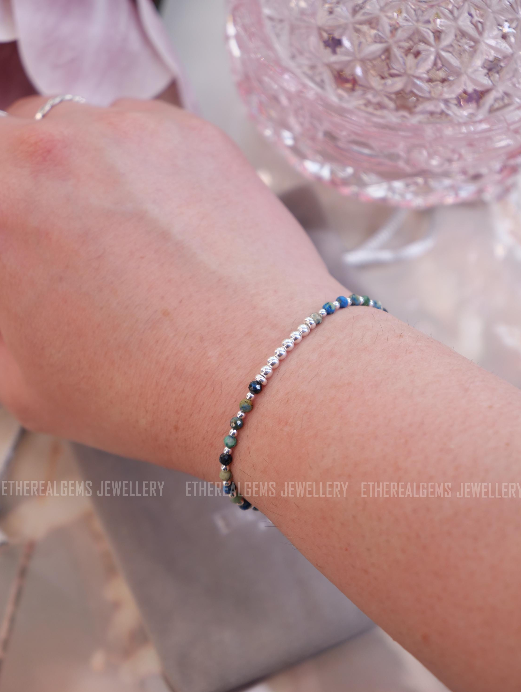 3mm Minimalist Gemstone Bracelet, Azurite bracelet, Elastic gemstone bracelet, Stacking bracelet, Beach bracelet, Multicolour bracelet
