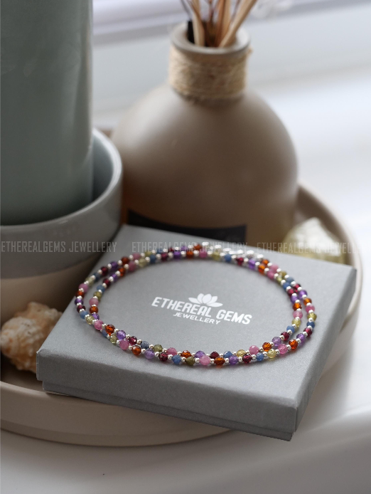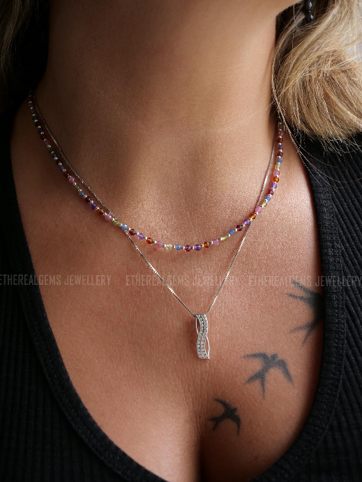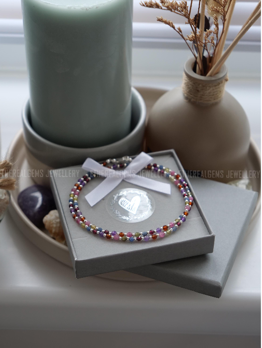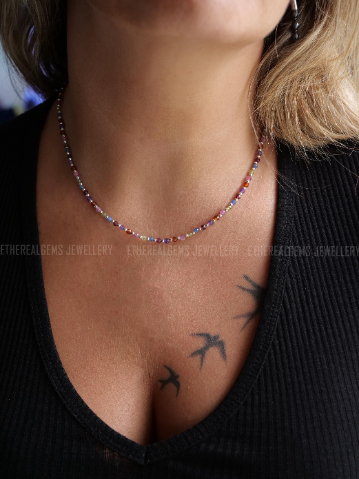 3mm Tiny Gemstone Necklace, Sapphire Amethyst Tourmaline Garnet Necklace, Beaded multicolour gemstone necklace, Mix gemstone necklace, Gift