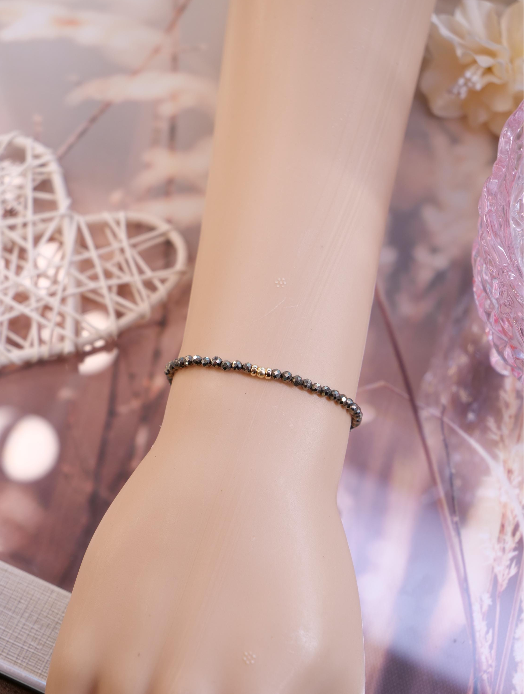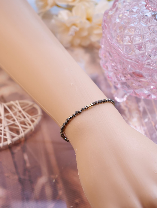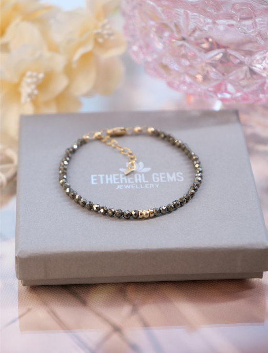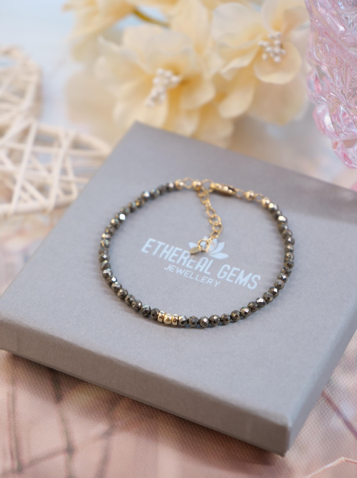 3mm Tiny Pyrite Gemstone Bracelet, Dainty gemstone bracelet, Statement bracelet, Stacking bracelet, Pyrite bracelet, Vintage bracelet