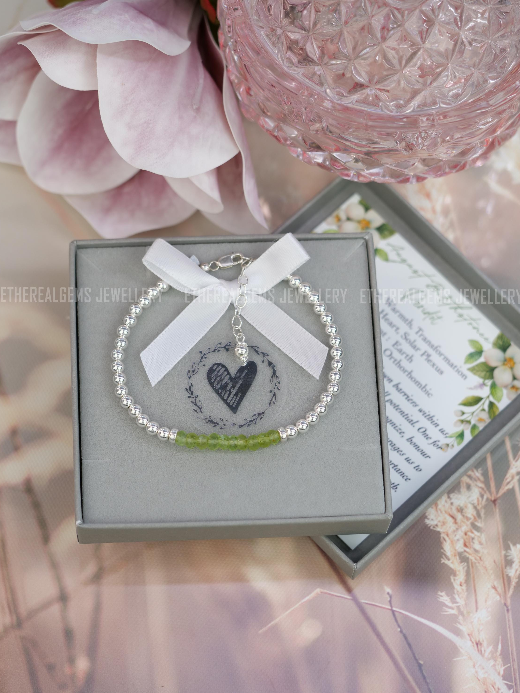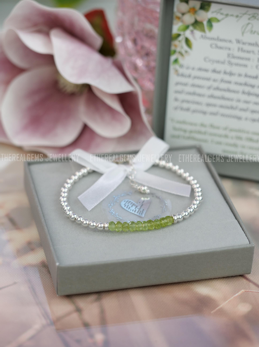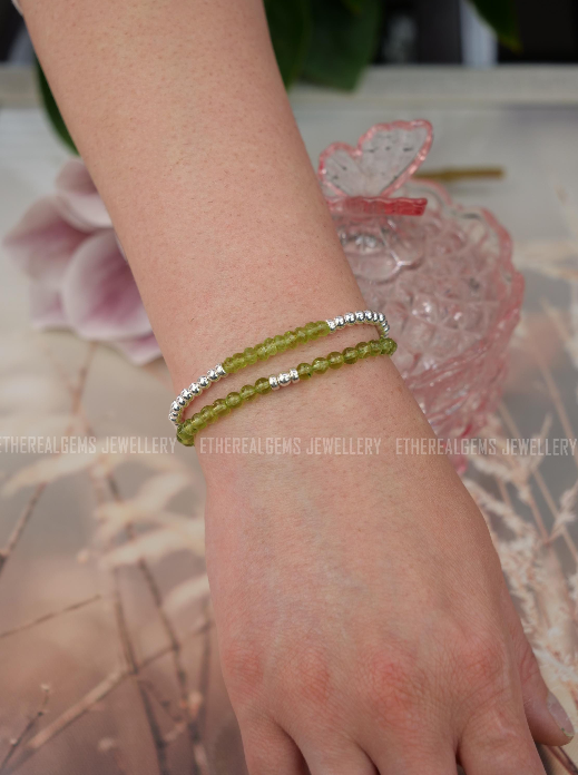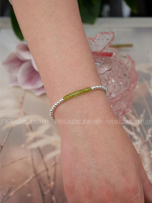 4mm Peridot Beaded Natural Gemstone Sterling Bracelet, August birthstone, Gift for her, Birthday gift, Genuine Top Grade Gift Jewellery