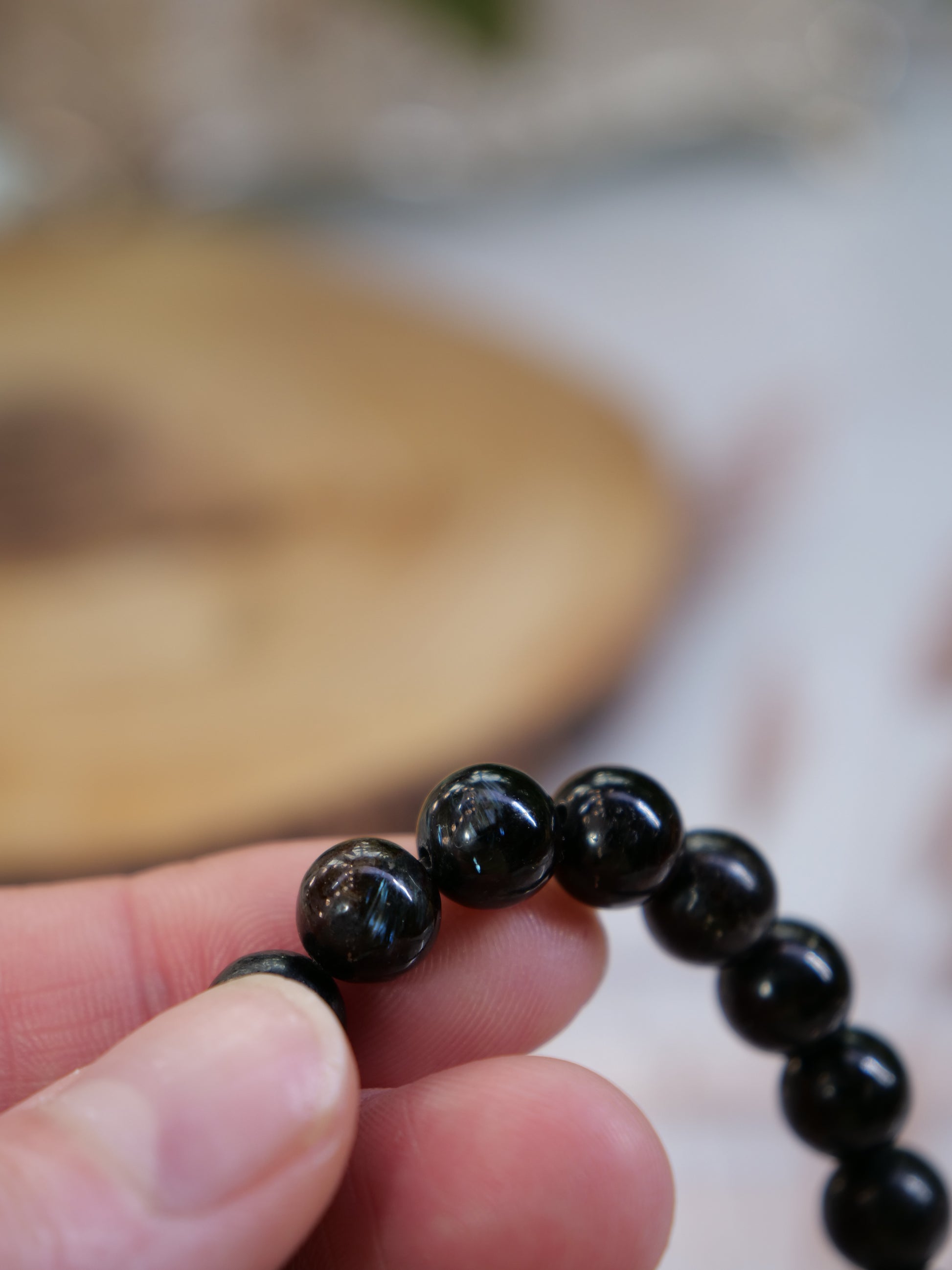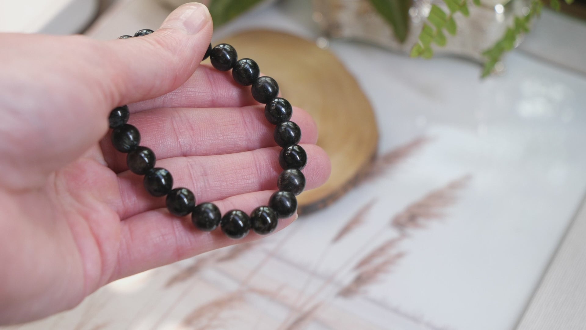 Astrophyllite 8mm Beaded Natural Gemstone Elastic Bracelet, Genuine Top Grade Gift Jewelry, Men Women Fashion Crystal Energy Jewellery