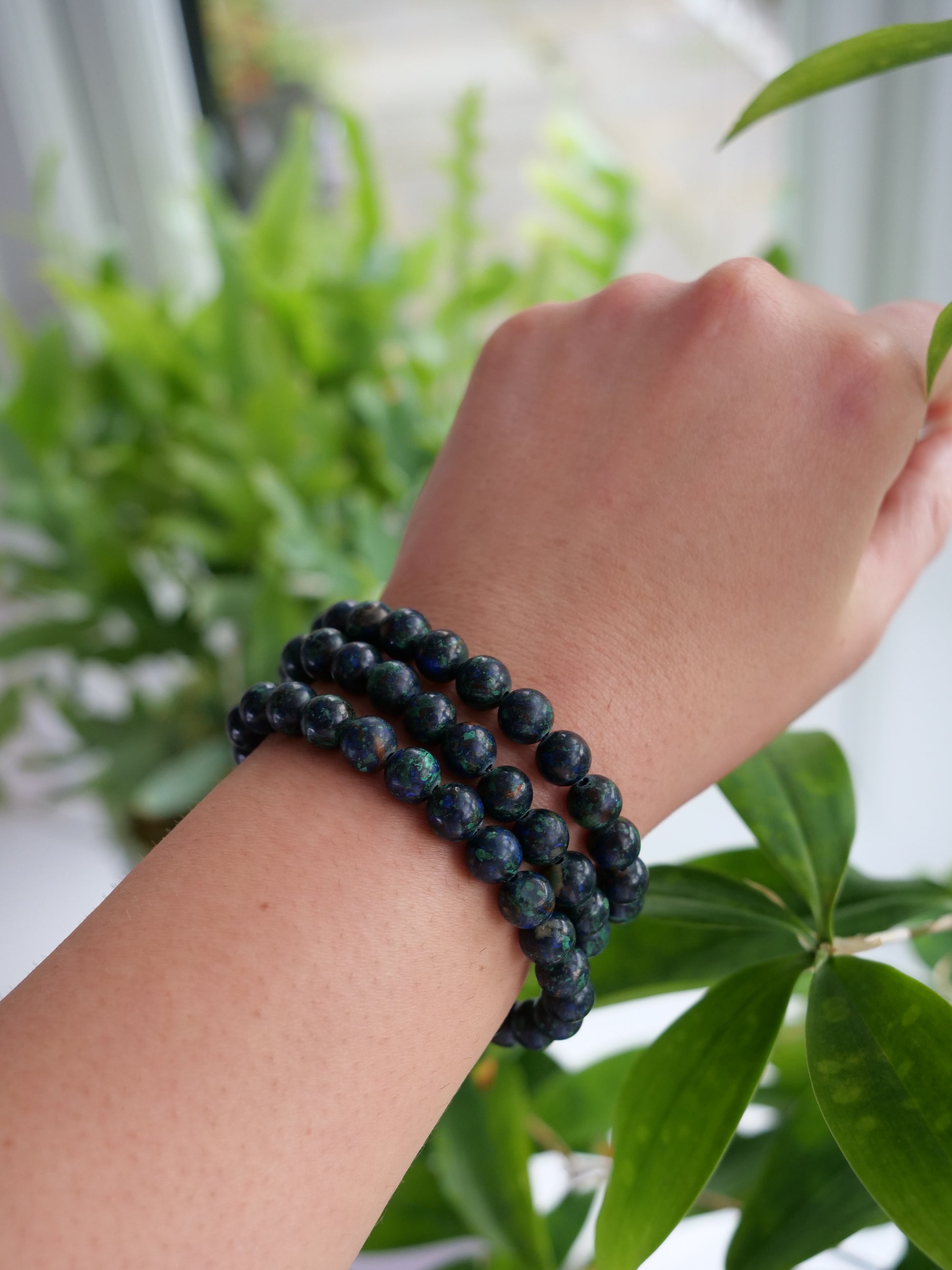 Azurite 8mm Beaded Natural Gemstone Elastic Bracelet, Genuine Top Grade Gift Jewelry, Men Women Fashion Crystal Energy Jewellery