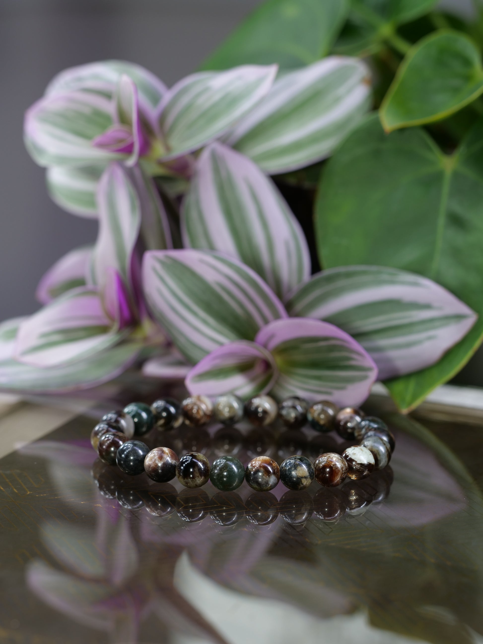 Biotite 8mm Beaded Natural Gemstone Elastic Bracelet, Genuine Top Grade Gift Jewelry, Men Women Fashion Crystal Energy Jewellery