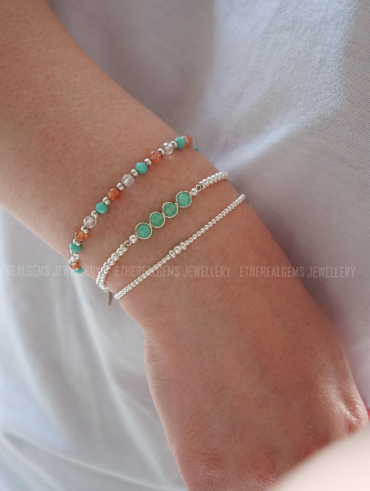 Chrysoprase Sterling Silver 3mm Bracelet, Stacking bracelet, Sterling Silver Elastic Bracelet, Minimalist bracelet, Statement bracelet