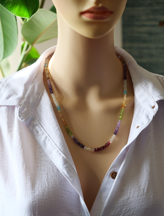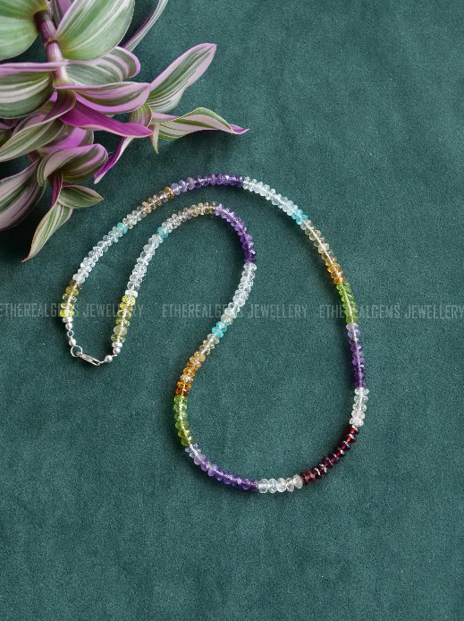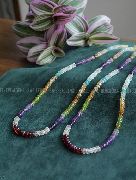 Garnet, Amethyst, Peridot, Citrine Necklace, Beaded gemstone necklace, Mix gemstone necklace, Ombre necklace, Multicolour Necklace Jewellery