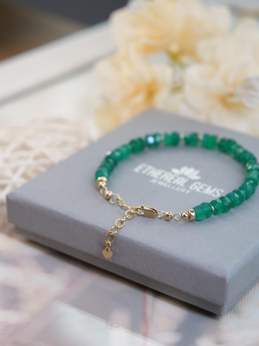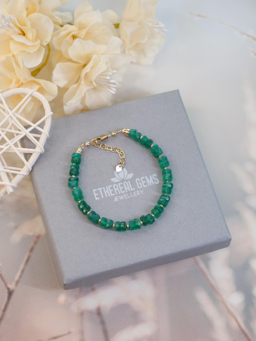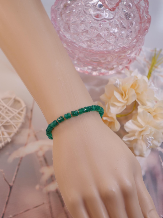 Green Onyx 5 mm Beaded Natural Gemstone Sterling Silver / 14ct Gold Filled Elastic Bracelet, Genuine Top Grade Gift Jewellery, Women Jewelry