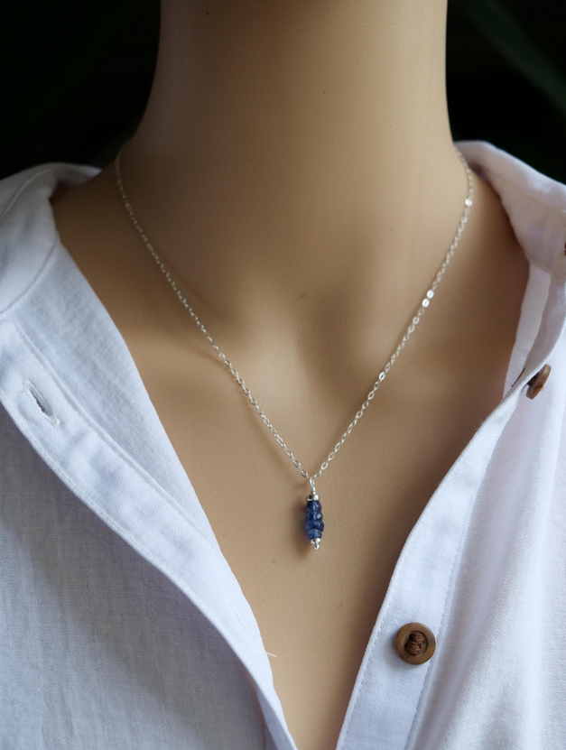 Kyanite 5mm Natural Gemstone Sterling Silver Bar Pendant Necklace, Genuine Top Grade Gift Jewelry, Women Fashion Crystal Energy Jewellery