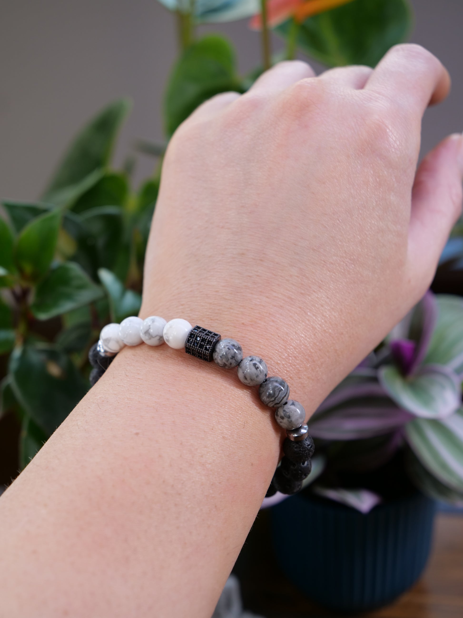 - Natural 8mm Lava, Howlite & Map Jasper Gemstone