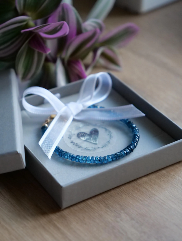 London Topaz Blue 4 mm Beaded Natural Gemstone Sterling Silver / 14ct Gold Filled Elastic Bracelet, Top Grade Gift Jewelry,Fashion Jewellery