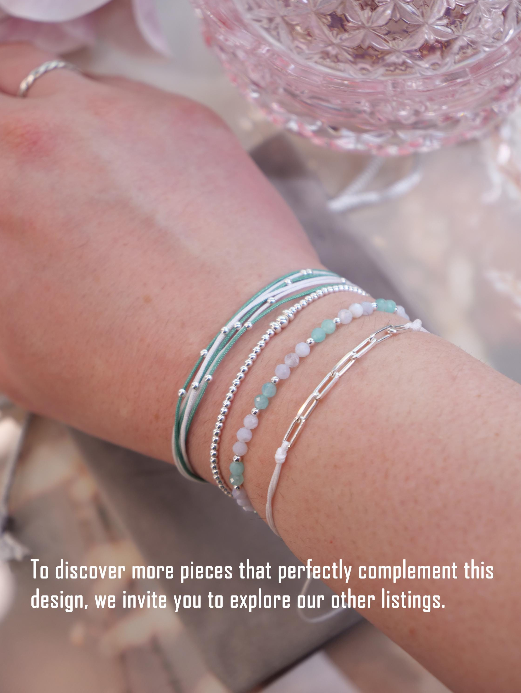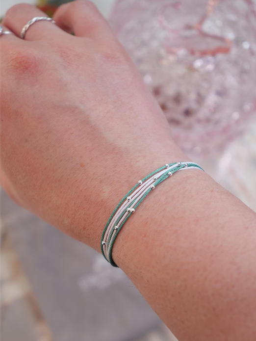 Multistrand cord bracelet, White green bracelet, Wristband, Sterling silver bracelet, Thread Strand Stacking Wristband, Beach bracelet