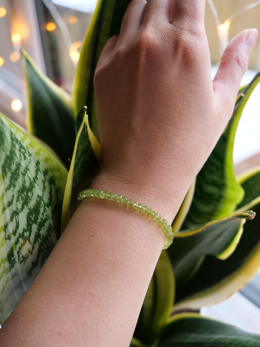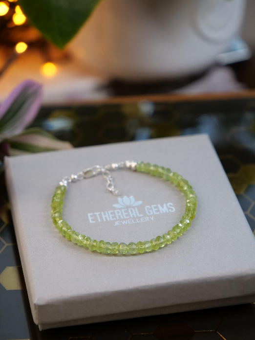 Peridot 5 mm Beaded Natural Gemstone Sterling Silver / 14ct Gold Filled Elastic Bracelet, Genuine Top Grade Gift Jewellery,August Birthstone