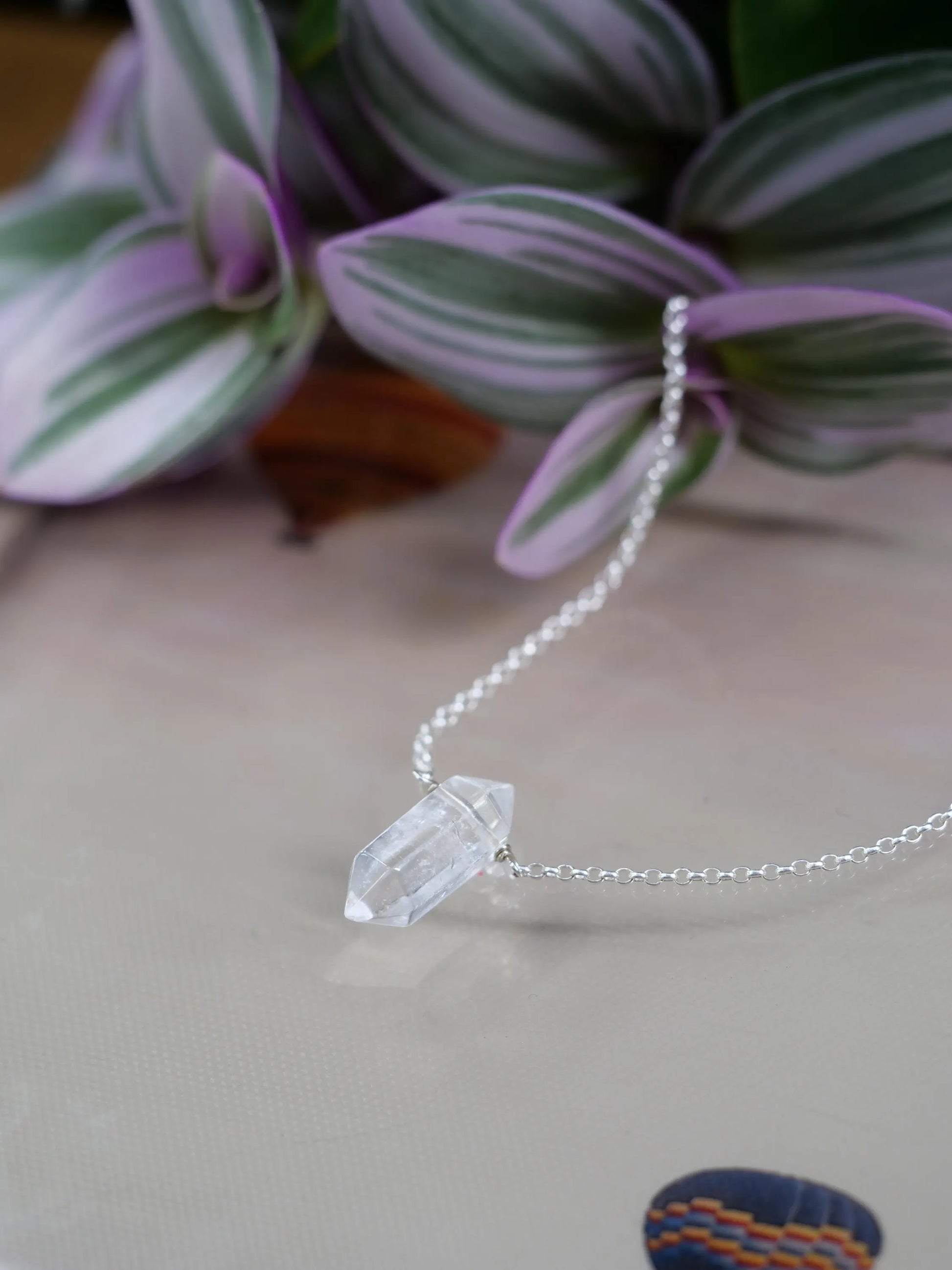 Quartz Point Natural Gemstone Sterling Silver Pendant Necklace,Genuine Top Grade Gift Jewelry,Women Fashion Crystal Energy Jewellery