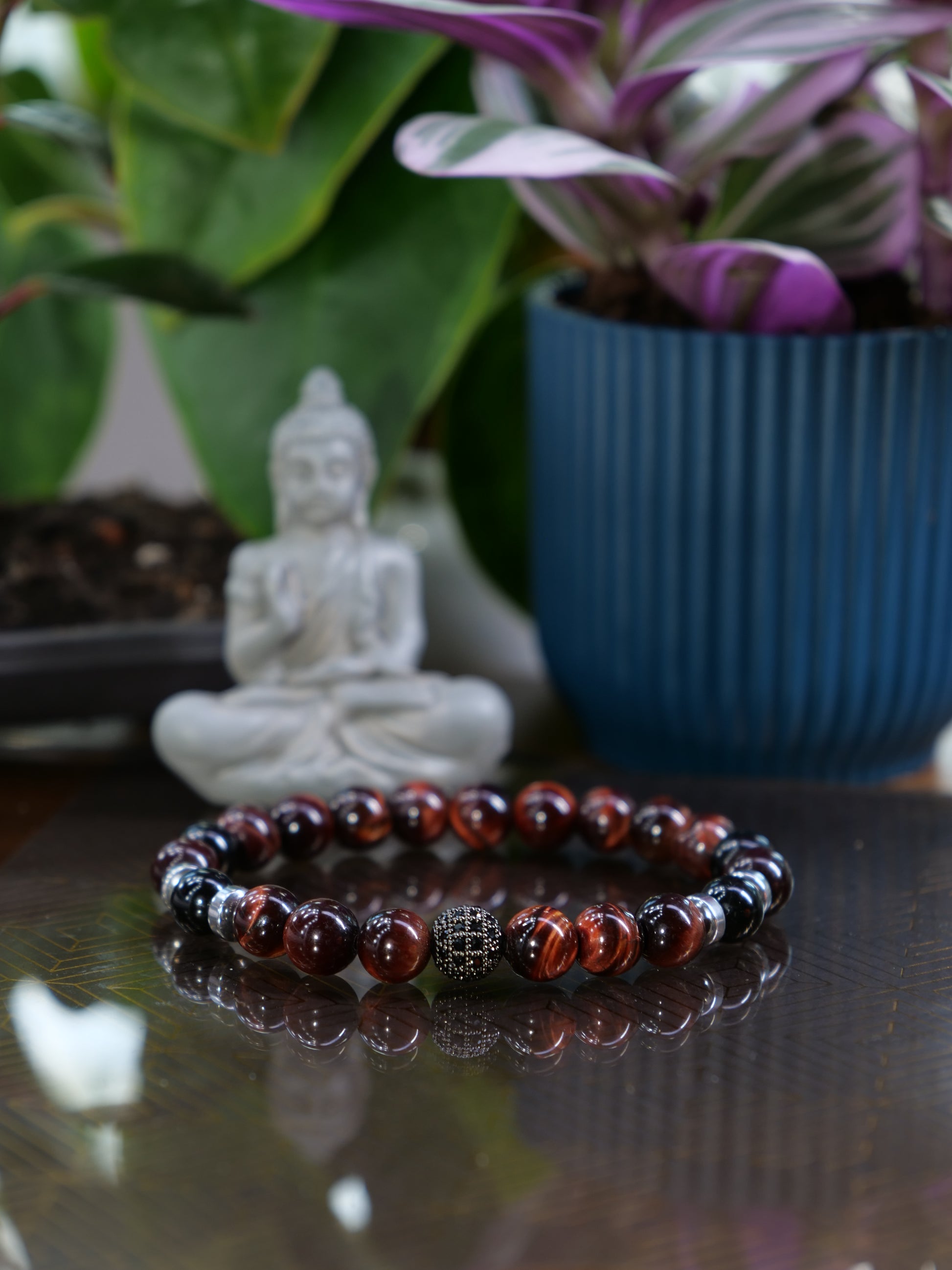 - Natural 8mm Red Tiger's Eye & Black Tourmaline Gemstone