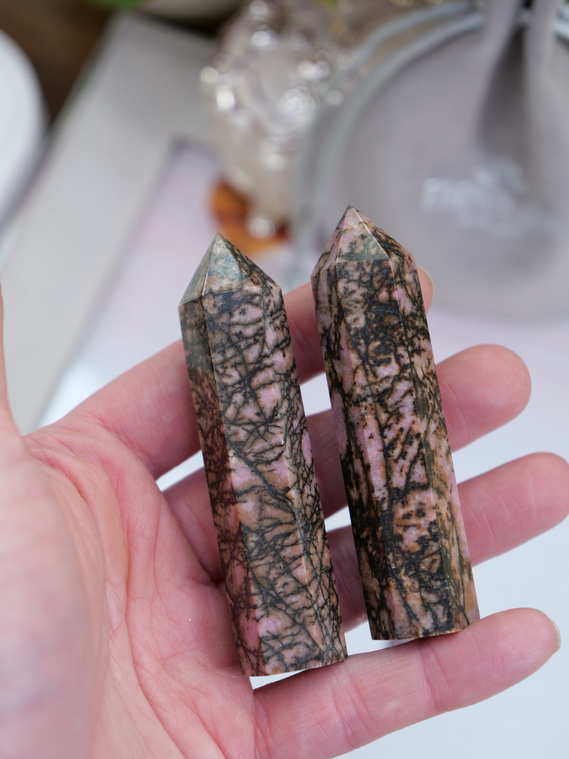 Rhodonite 3-inch Natural Energy Crystal Tower Point Mineral Gemstone, Home Decoration Obelisk Gift Meditation Wand Gem