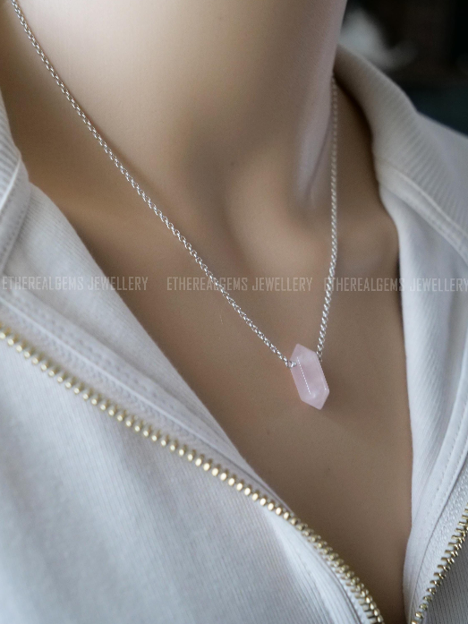 Rose Quartz Point Natural Gemstone Sterling Silver Pendant Necklace, Genuine Top Grade Gift Jewelry, Women Fashion Crystal Energy Jewellery