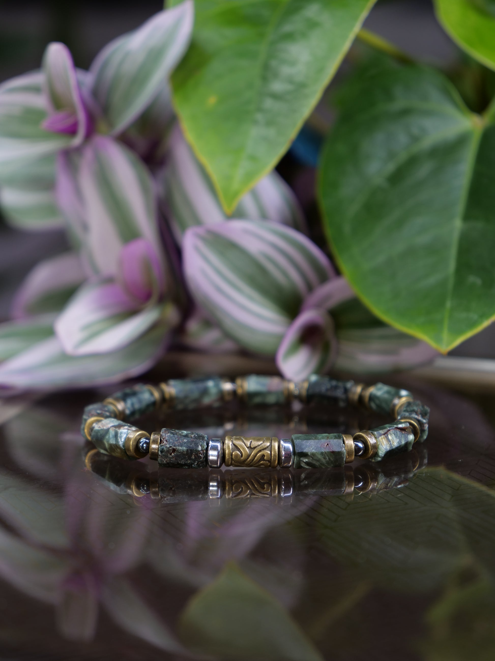 Seraphinite Raw Nugget & Hematite Elastic Bracelet