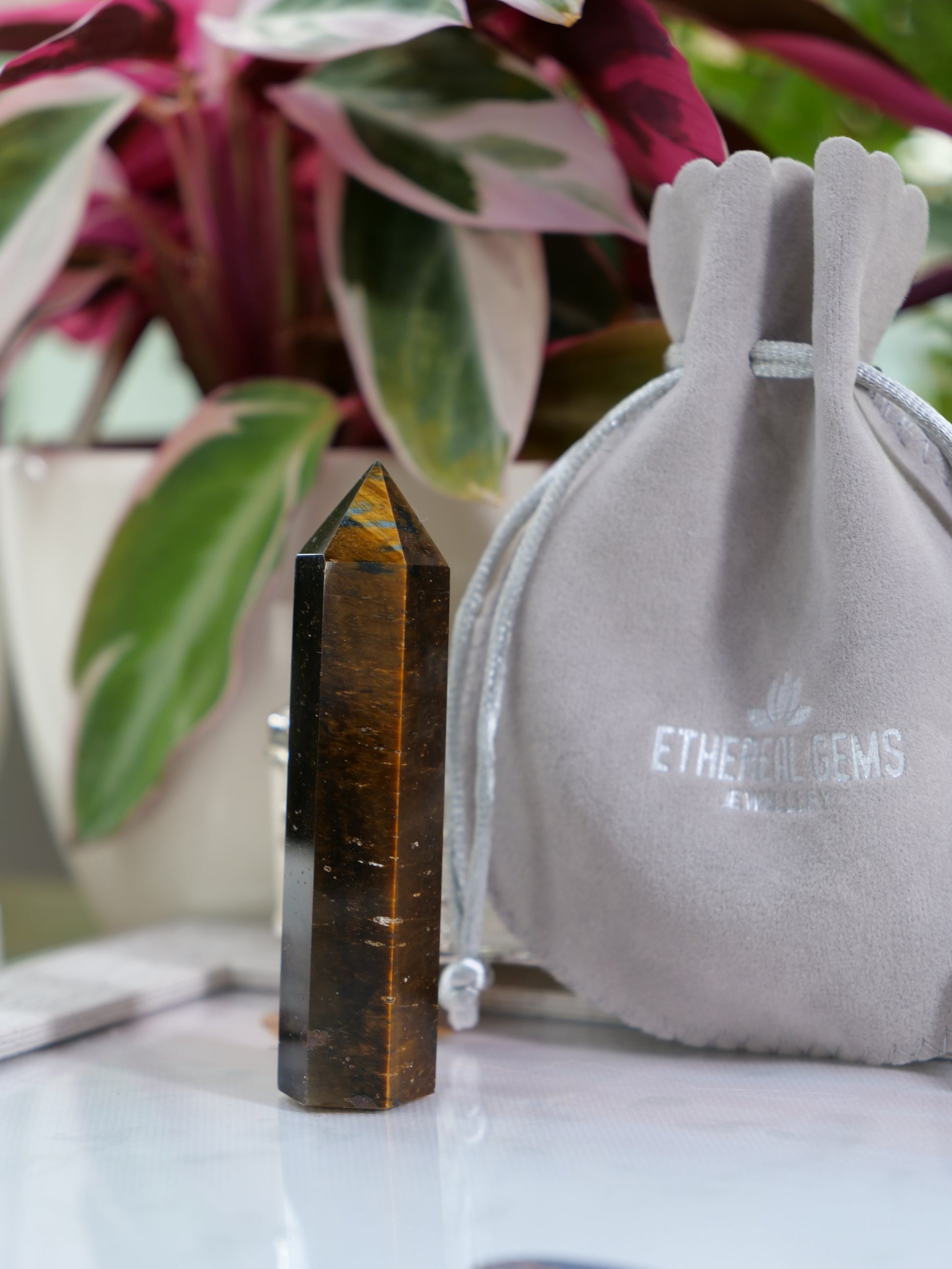 Tigers Eye 3-inch Natural Energy Crystal Tower Point Mineral Gemstone, Home Decoration Obelisk Gift Meditation Wand Gem