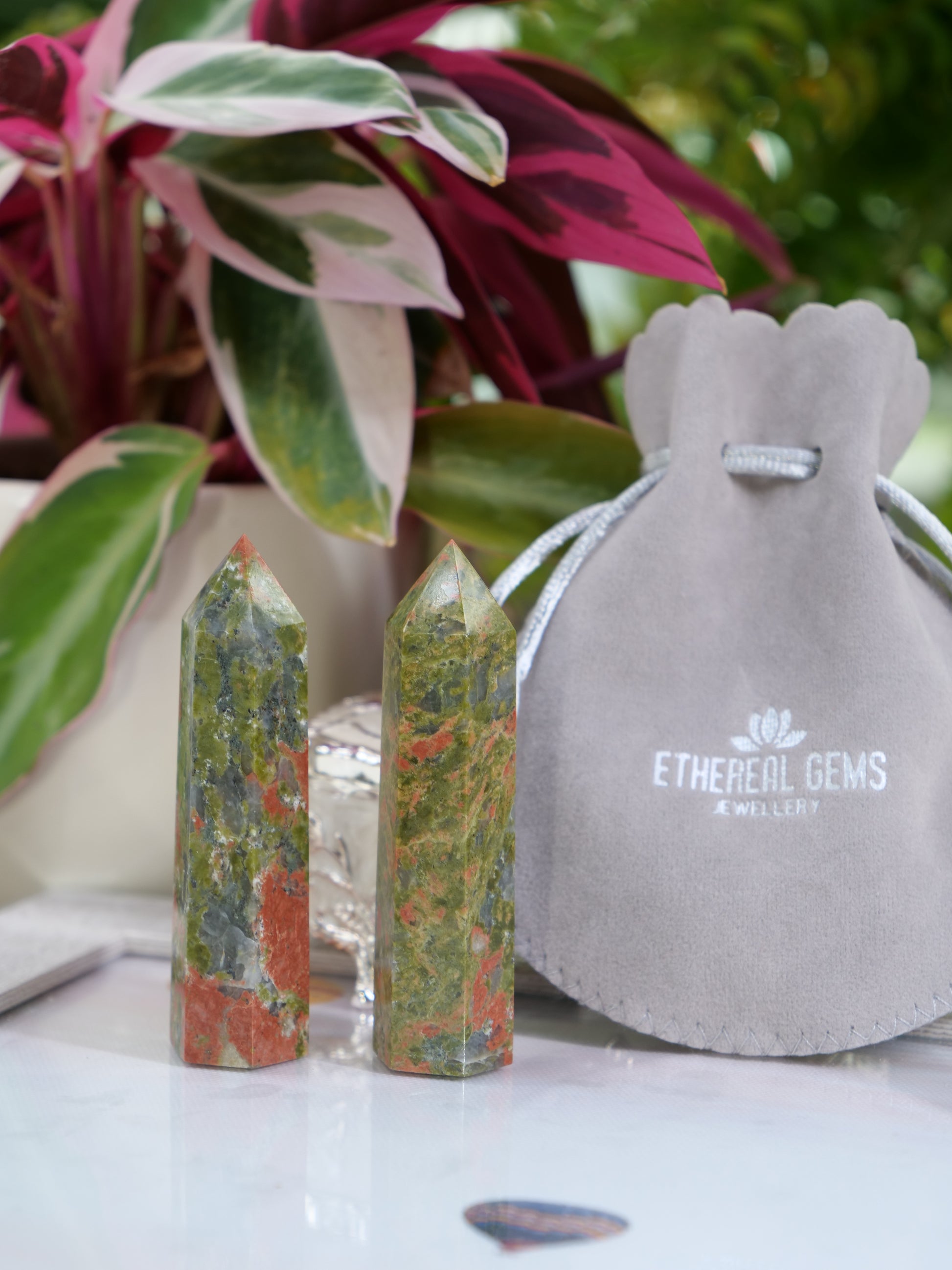 Unakite 3-inch Natural Energy Crystal Tower Point Mineral Gemstone, Home Decoration Obelisk Gift Meditation Wand Gem